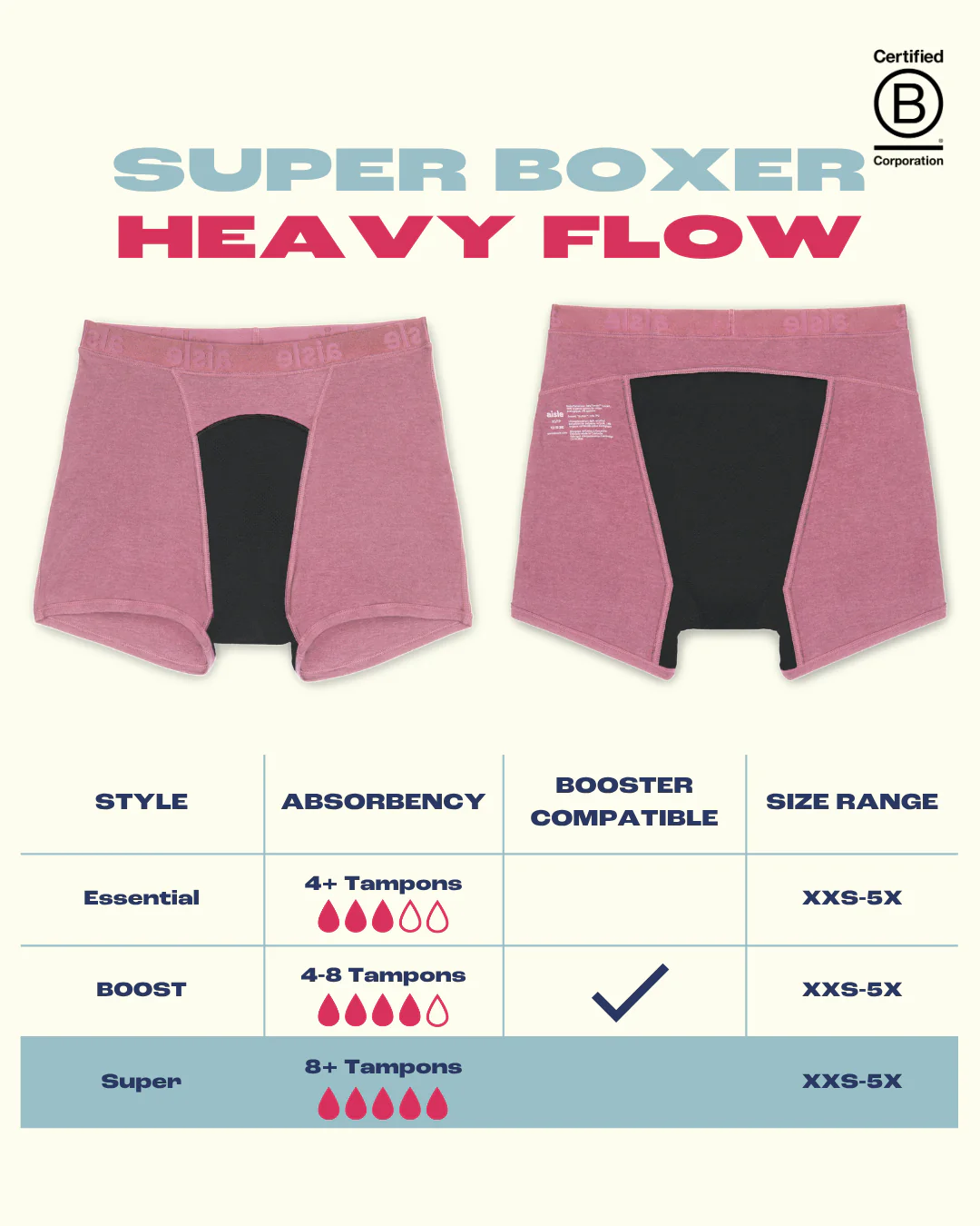 With multiple absorbency levels and removable boosters, Aisle period underwear works for a wide range of flows.