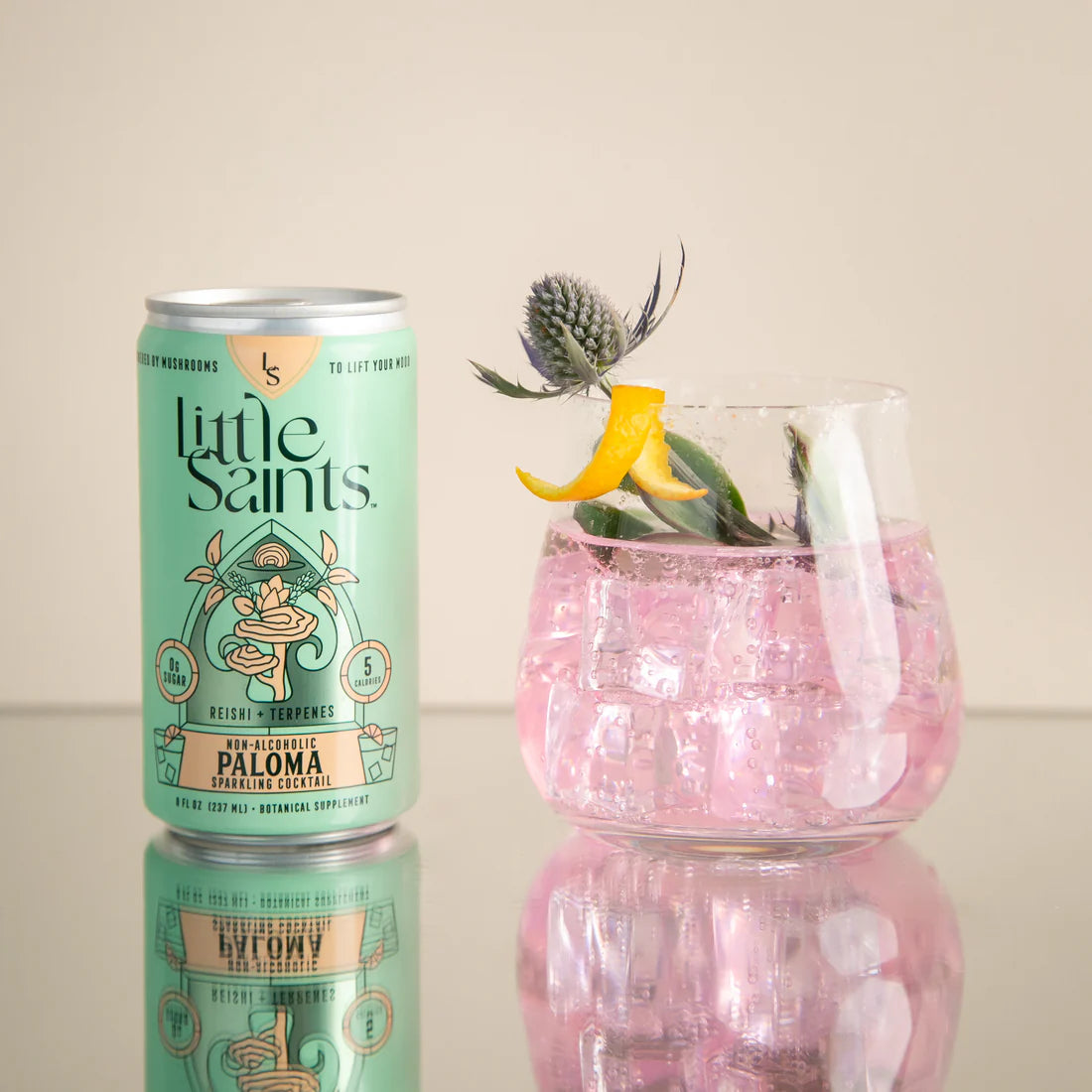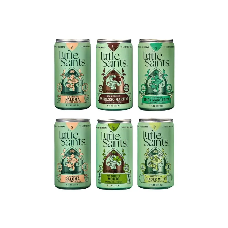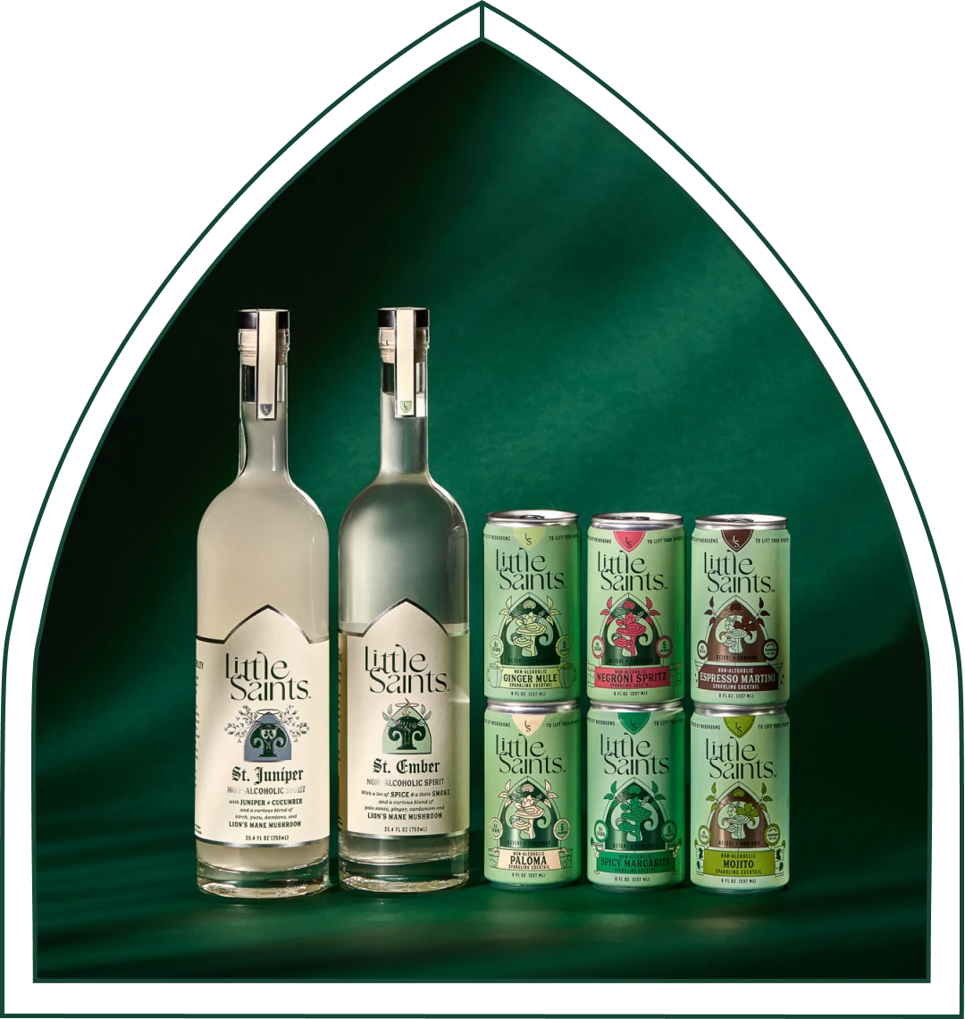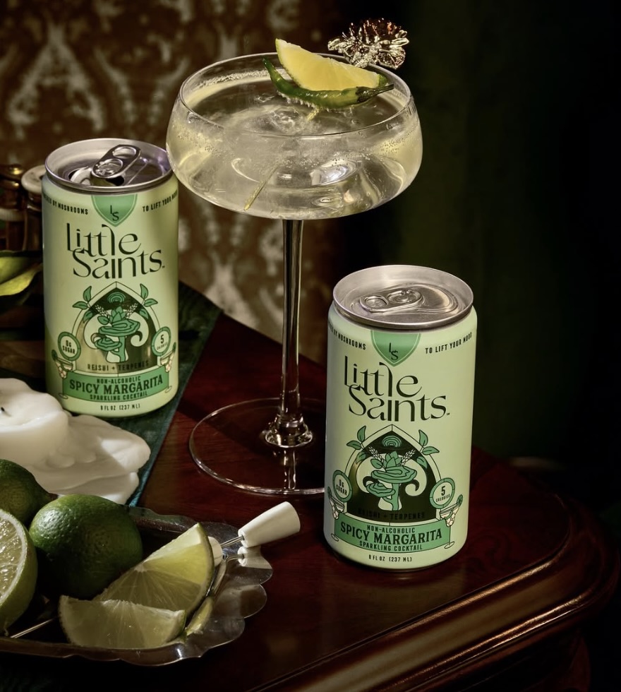 Little Saints offers a lineup of non-alcoholic spirits and ready-to-drink cocktails designed to mimic the experience of traditional drinks without the alcohol. Their formulas use botanical ingredients and functional mushrooms like lion’s mane and reishi, paired with low-calorie, zero-sugar formulations.